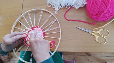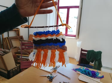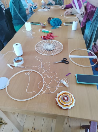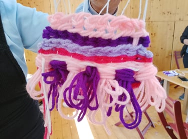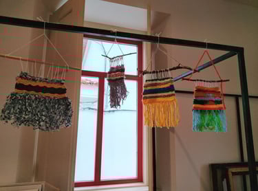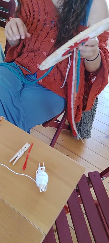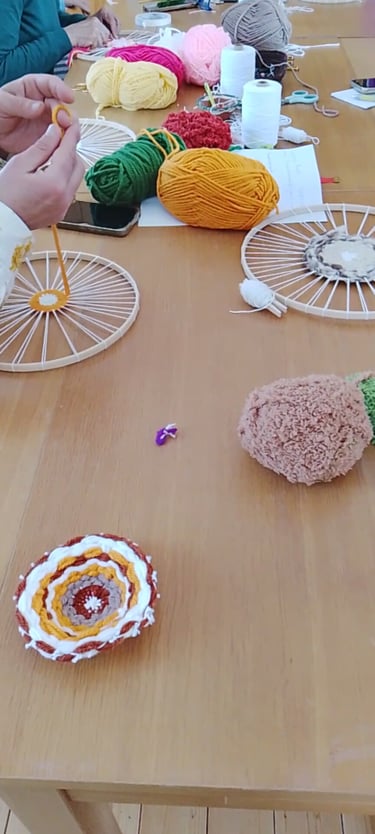 Foram duas manhãs passadas com as mãos entrelaçadas em fios e pontos, criando texturas, tecendo e conversando, aprendendo e partilhando.